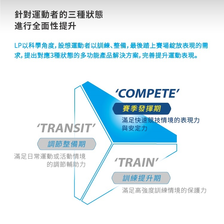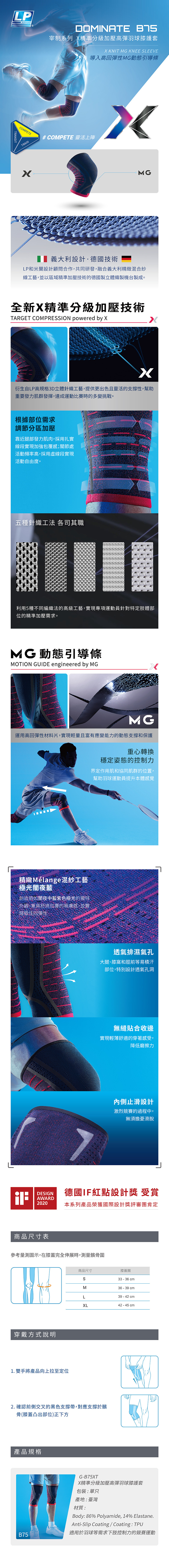 LP獨特3D立體針織工藝的 #X精準分級加壓,採用虛實線設計,依關節與肌肉需求提供適合的加壓效果,搭配 #MG動態引導條,幫助重要肌群發揮,實現輕量且富有應變力的動態支撐與保護。