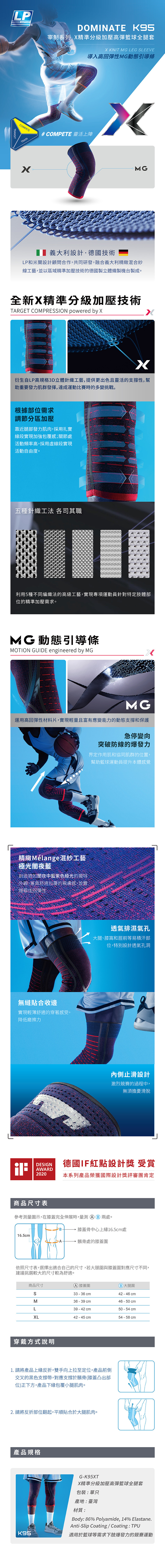 LP獨特3D立體針織工藝的 #X精準分級加壓,採用虛實線設計,依關節與肌肉需求提供適合的加壓效果,搭配 #MG動態引導條,幫助重要肌群發揮,實現輕量且富有應變力的動態支撐與保護。