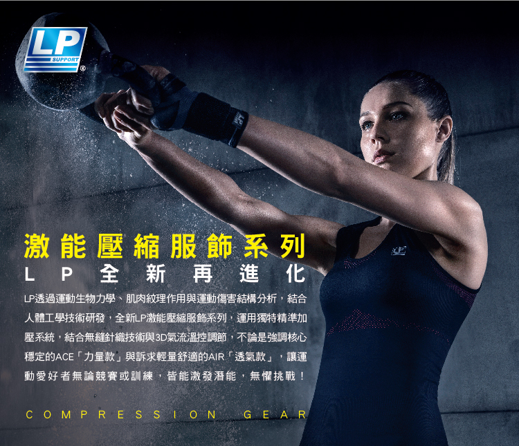 LP激能壓縮服飾系列,採用獨特精準分級加壓系統,結合無縫針織技術與3D氣流溫控設計,提供訴求核心穩定的[力量款]及強化輕量舒適的[透氣款],讓運動者無論競賽或是訓練都能激發潛能 · 無懼挑戰!