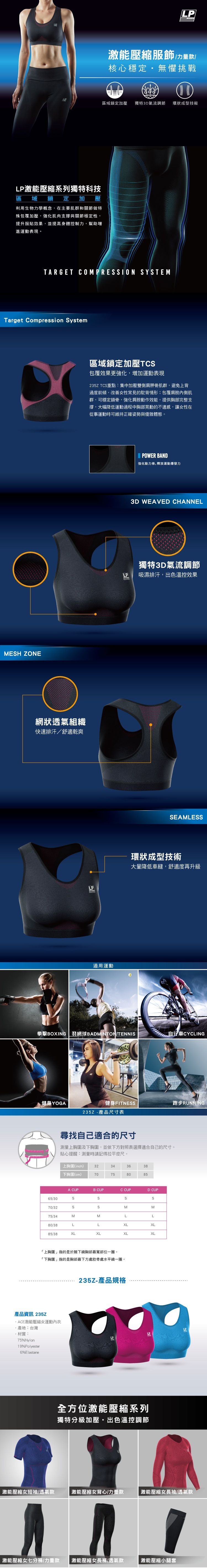 LP運動內衣採用獨特分級加壓設計,能提供完整支撐,大幅降低運動過程中胸部晃動的不適感,在運動時可維持正確姿勢與優雅體態。馬上挑選!