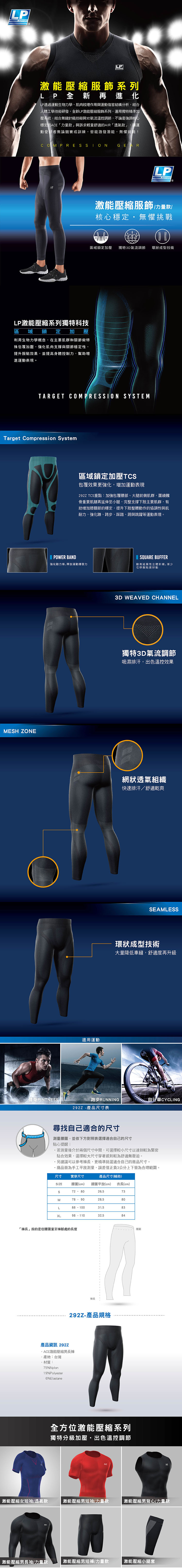 LP激能壓縮服飾系列,採用獨特精準分級加壓系統,結合無縫針織技術與3D氣流溫控設計,提供訴求核心穩定的[力量款]及強化輕量舒適的[透氣款],讓運動者無論競賽或是訓練都能激發潛能 · 無懼挑戰!