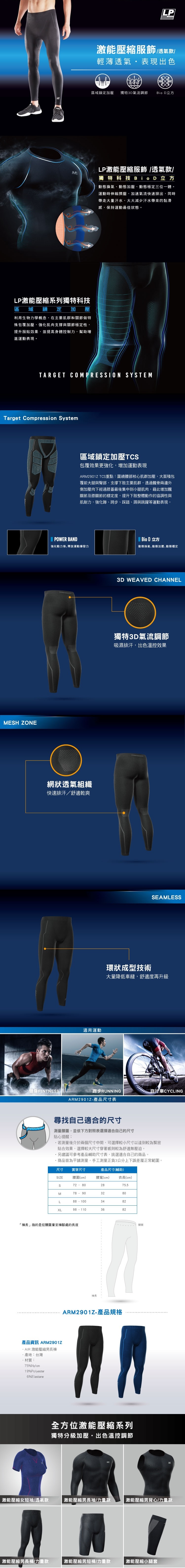 LP激能壓縮服飾系列,採用獨特精準分級加壓系統,結合無縫針織技術與3D氣流溫控設計,提供訴求核心穩定的[力量款]及強化輕量舒適的[透氣款],讓運動者無論競賽或是訓練都能激發潛能 · 無懼挑戰!