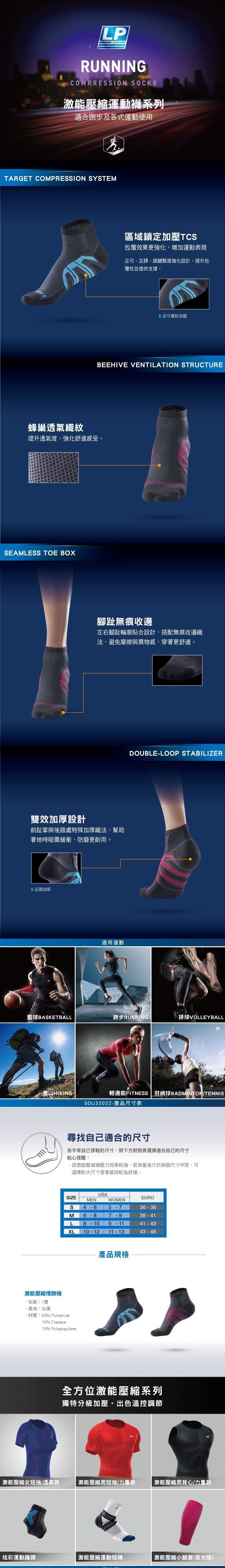 LP - 激能壓縮慢跑襪 3202Z(黑/桃)